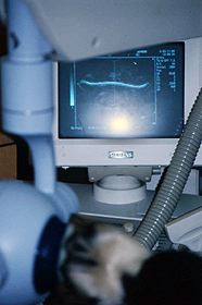 Der Grund für die Wahl dieses Gerätes bestand in der sicheren Fokussierung der Stoßwellen und einer genügend tiefen Eindringungstiefe ins Gewebe (1). Für veterinärmedizinische Zwecke werden auch Therapieeinheiten angeboten, die auf dem Prinzip der elektrohydraulischen oder der radialen Stoßwellenerzeugung beruhen. Radiale oder ballistische Stoßwellen streuen mit zunehmender Eindringtiefe und sind daher allenfalls für oberflächliche Behandlungsindikationen geeignet. Aus unserer Erfahrung gewährleisten nur elektromagnetisch generierte Stoßwellen ein kontinuierliches und gezieltes Treffen des Behandlungsgebietes (1, 2, 3, 16, 17, 20).